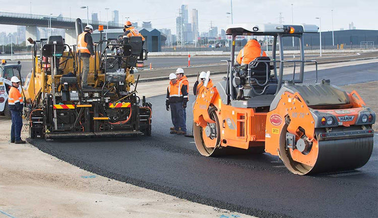 ضغط الأسفلت لضمان التماسك.